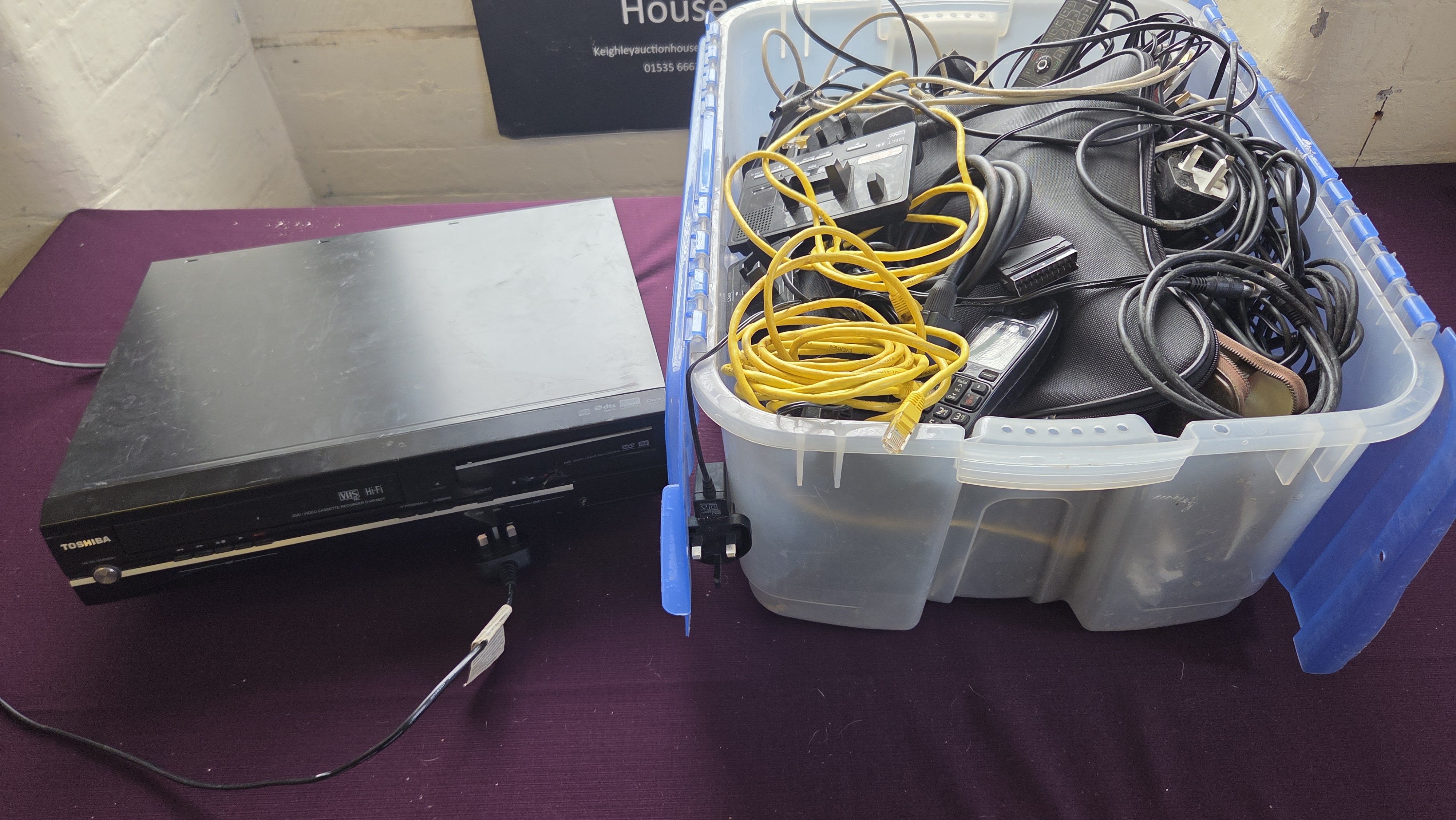 Lot 80 Toshiba D-VR16DT DVD/VHS Recorder and an Assortment of Electronic Cables and Accessories