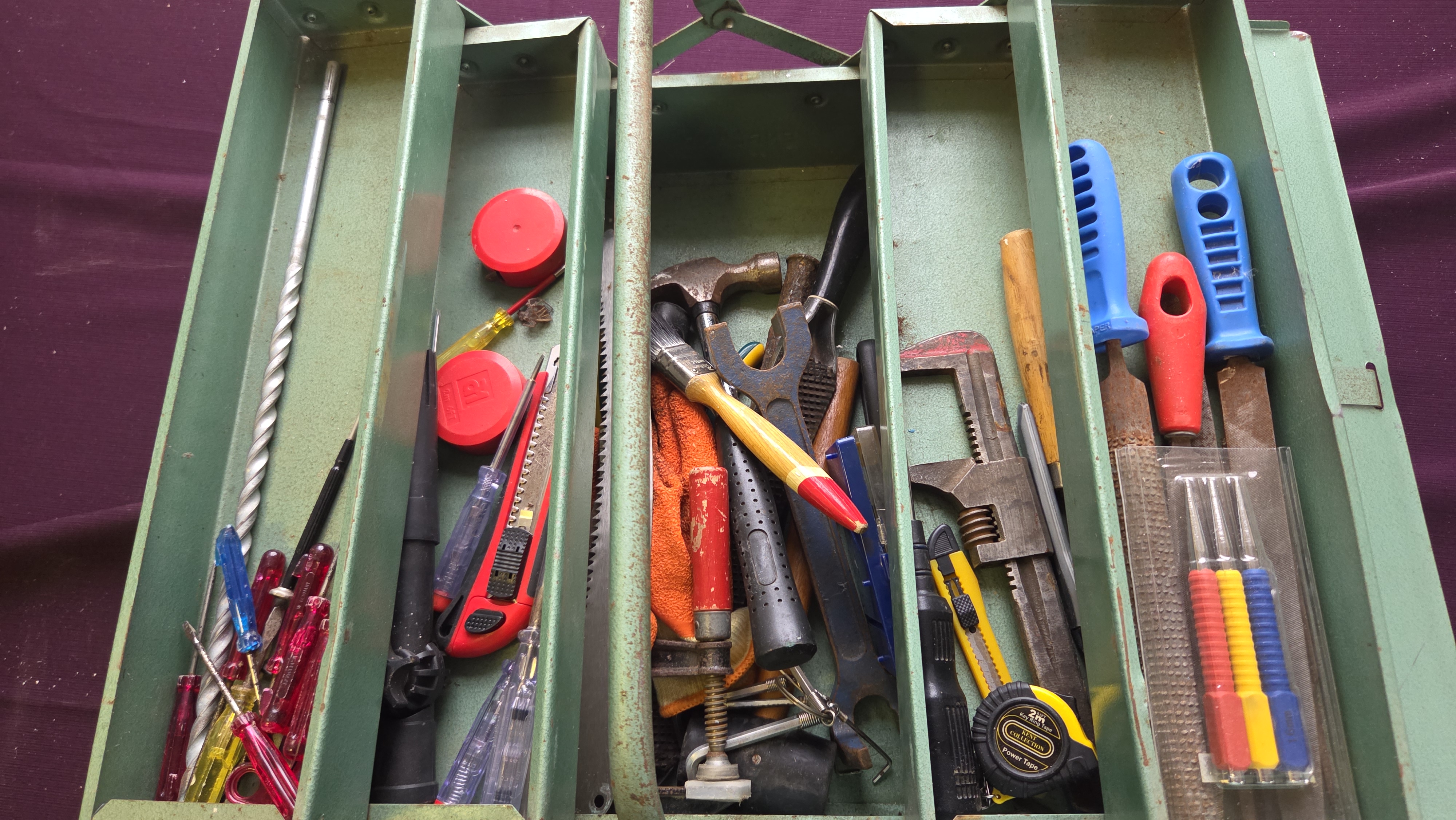 Lot 86 An Assortment of Domestic and Workshop Hand Tools within a Cantilever Toolbox