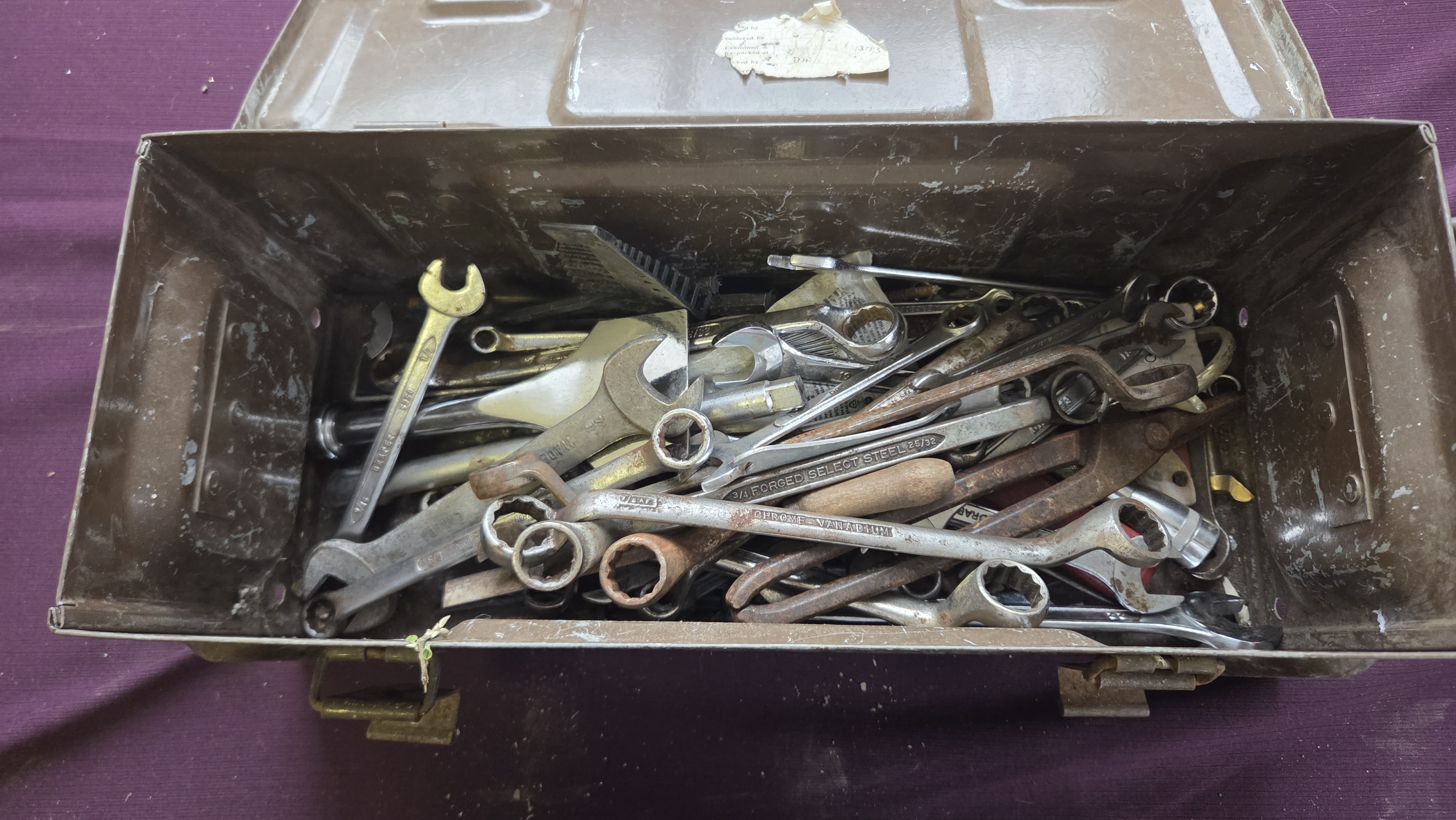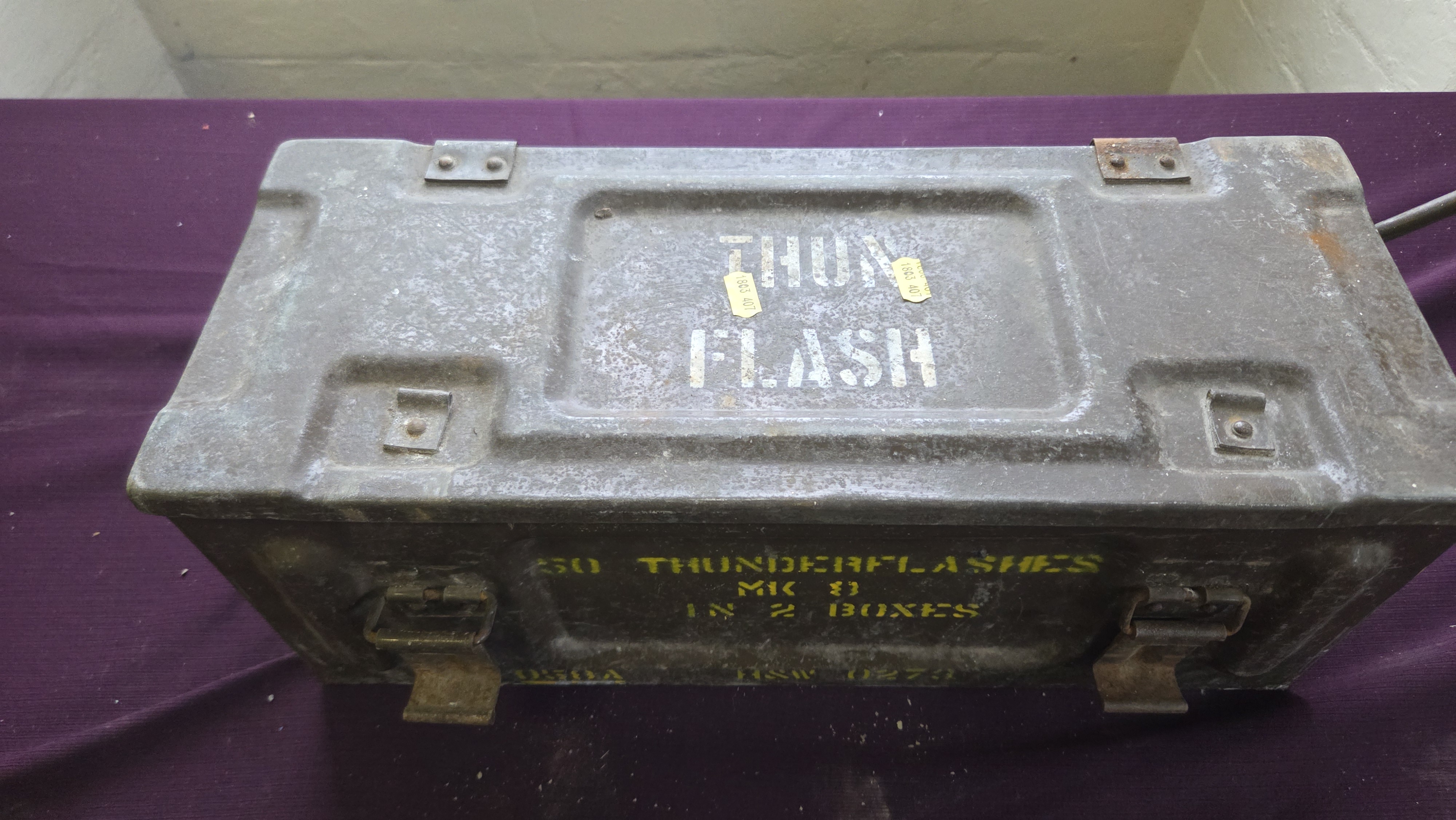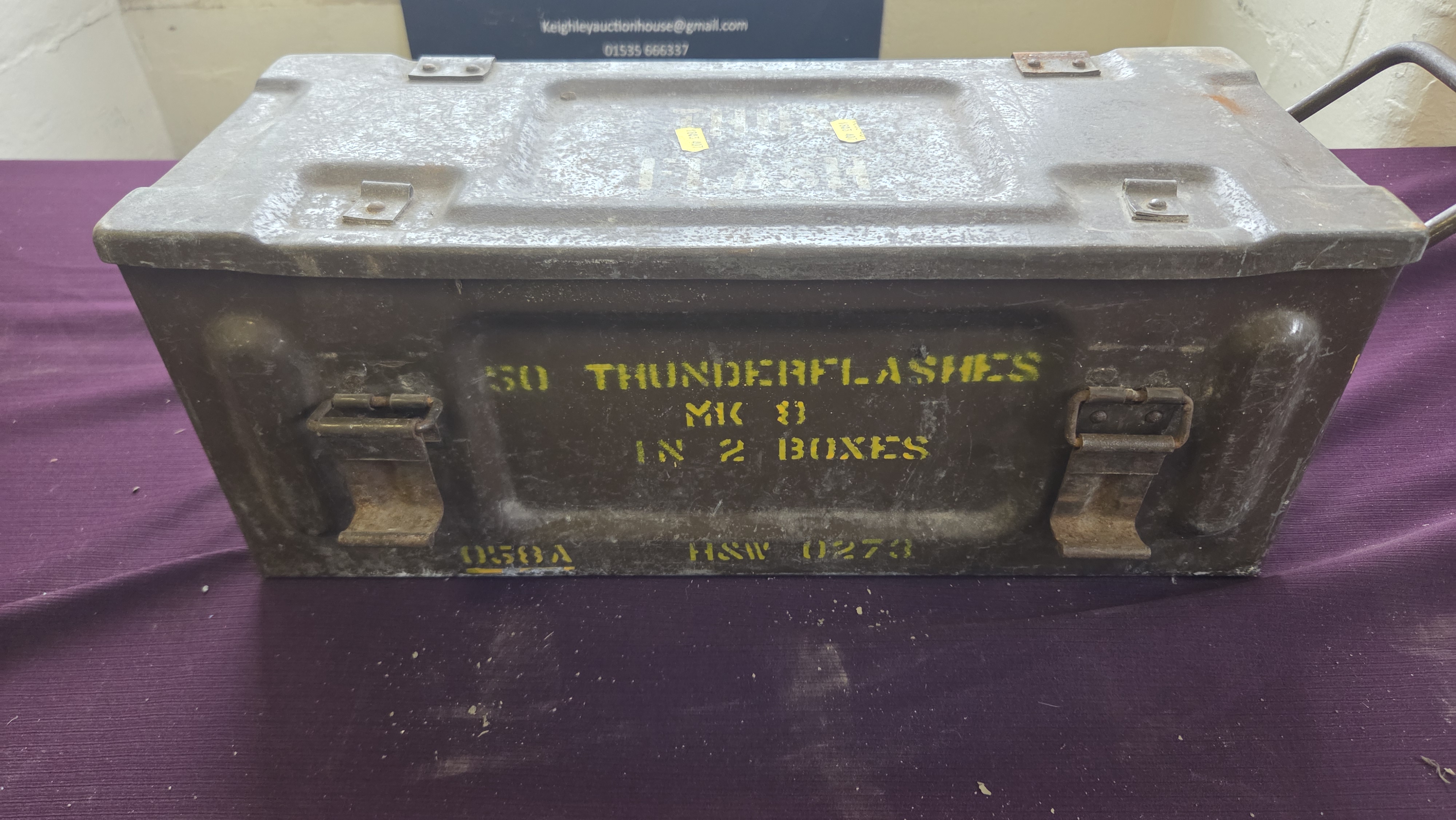 Lot 88 A British Military Issued Thunderflash Mk 8 Steel Transit Box and Assorted Hand Tools