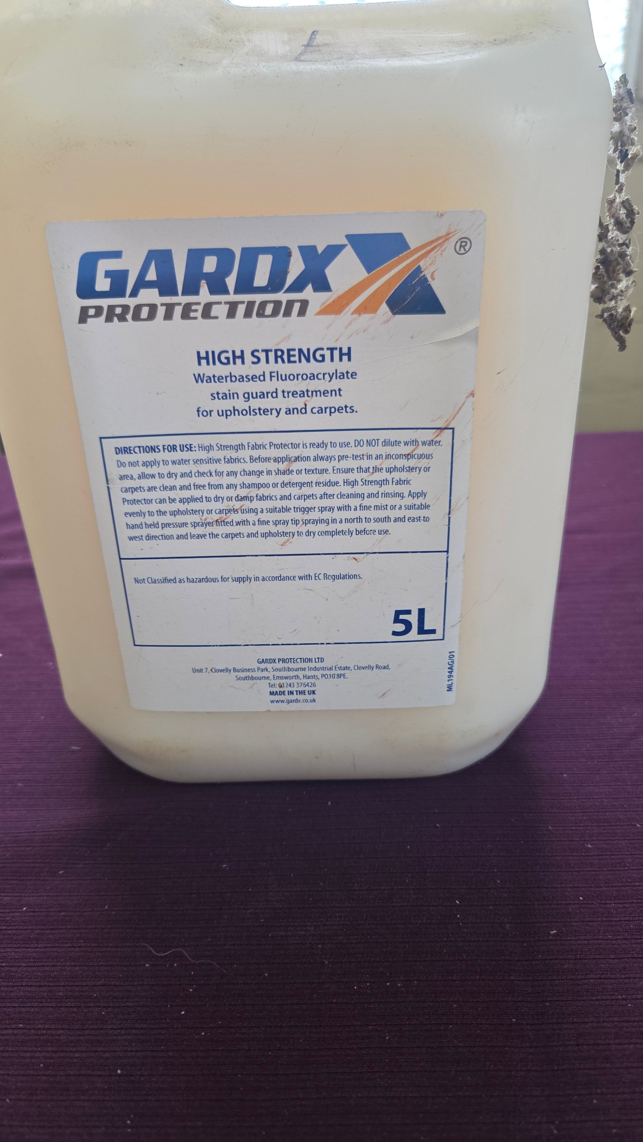Lot 190 GardX Protection High Strength Waterbased Fluoroacrylate Stain Guard Treatment 5L