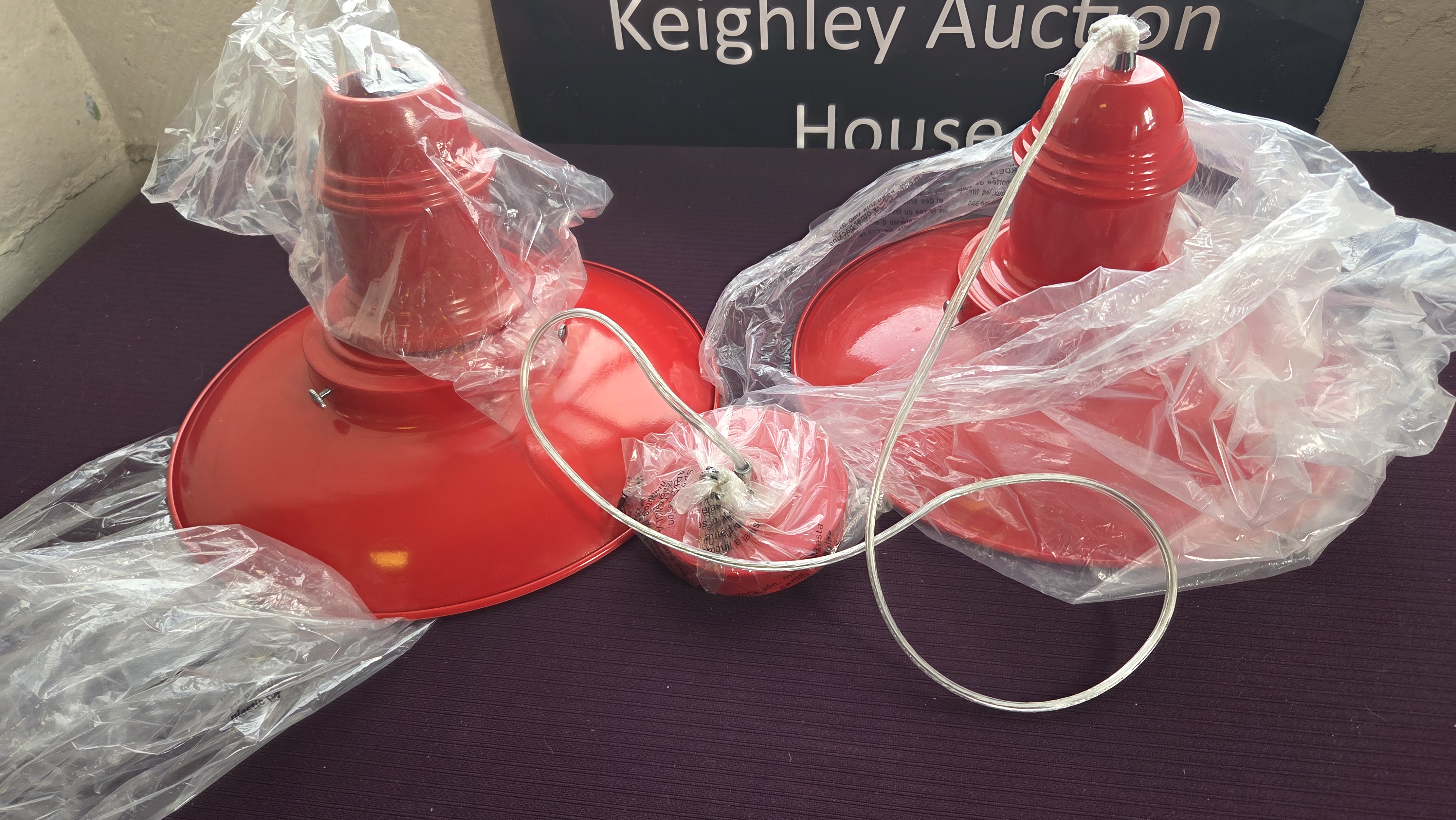 Lot 268 A Pair of Modern Industrial Style Red Enamelled Pendant Ceiling Lights