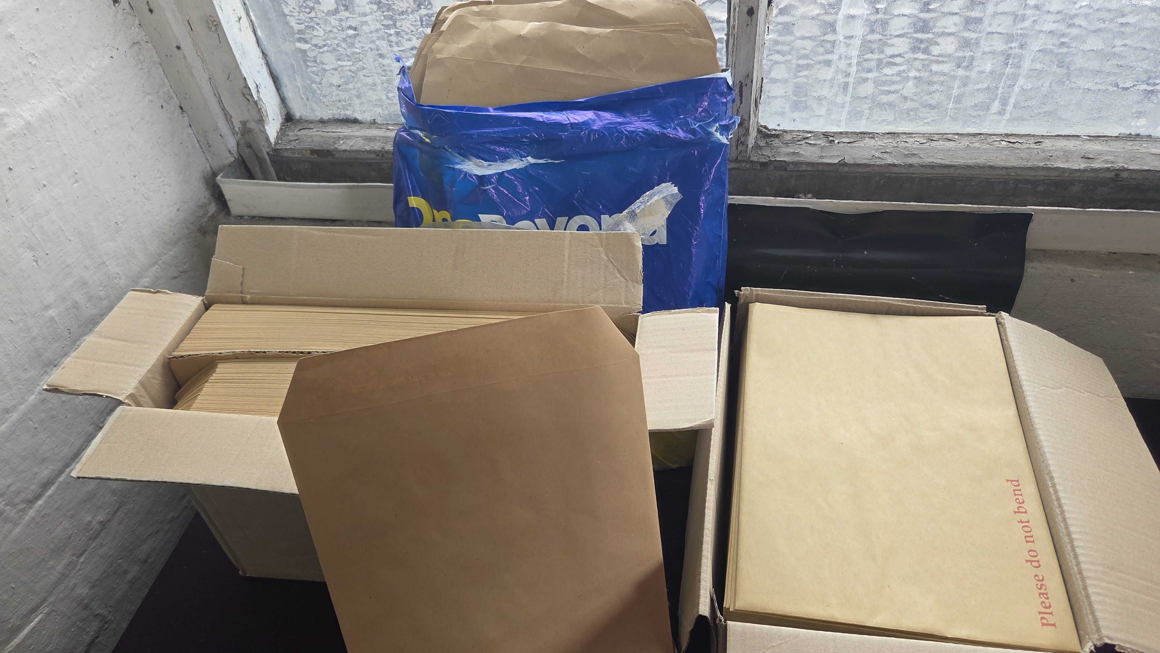 Lot 275 Two Boxes and Bag of Manila and Board-Backed Envelopes