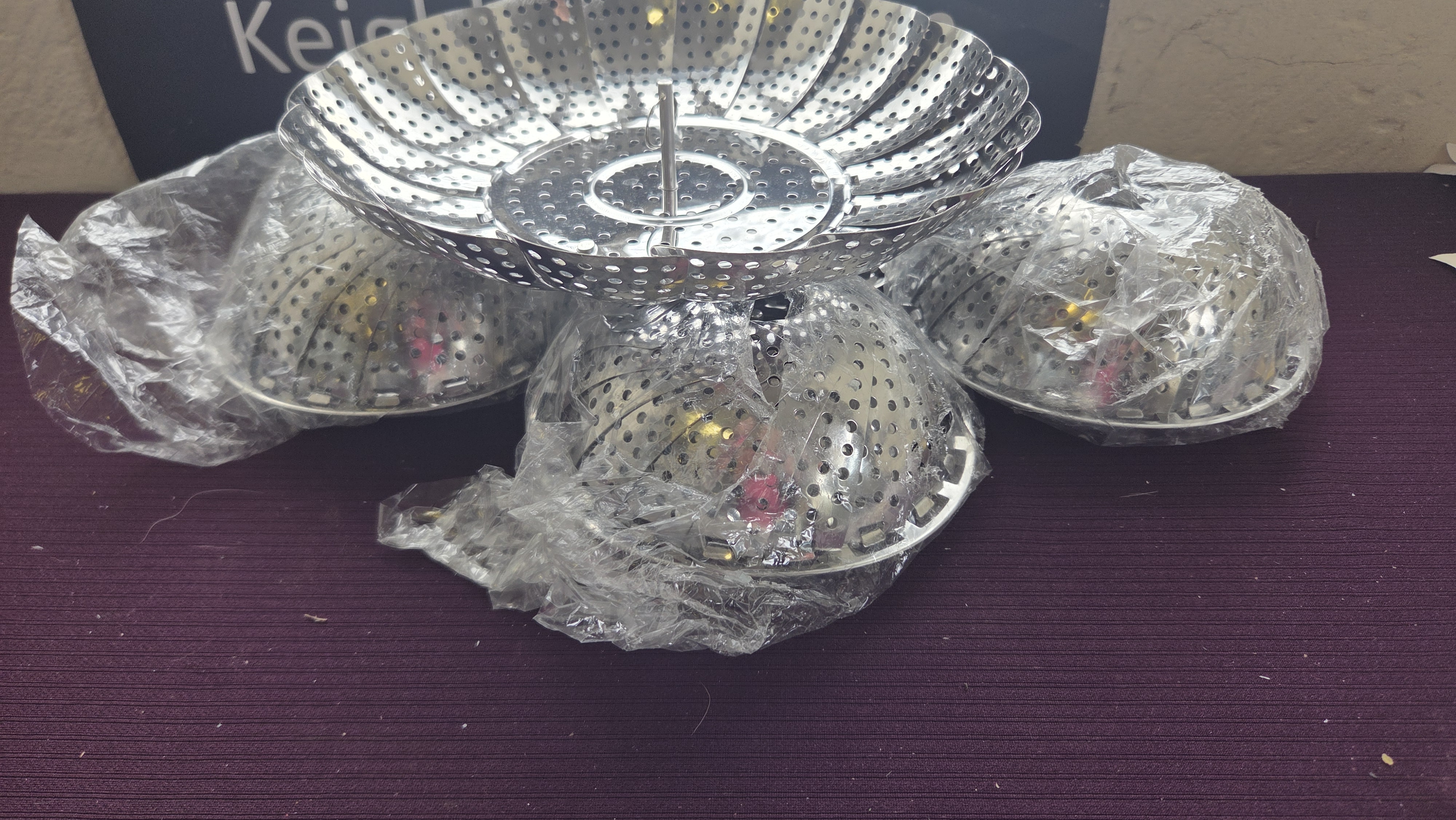 Lot 283 Five Stainless Steel Folding Vegetable Steamer Baskets