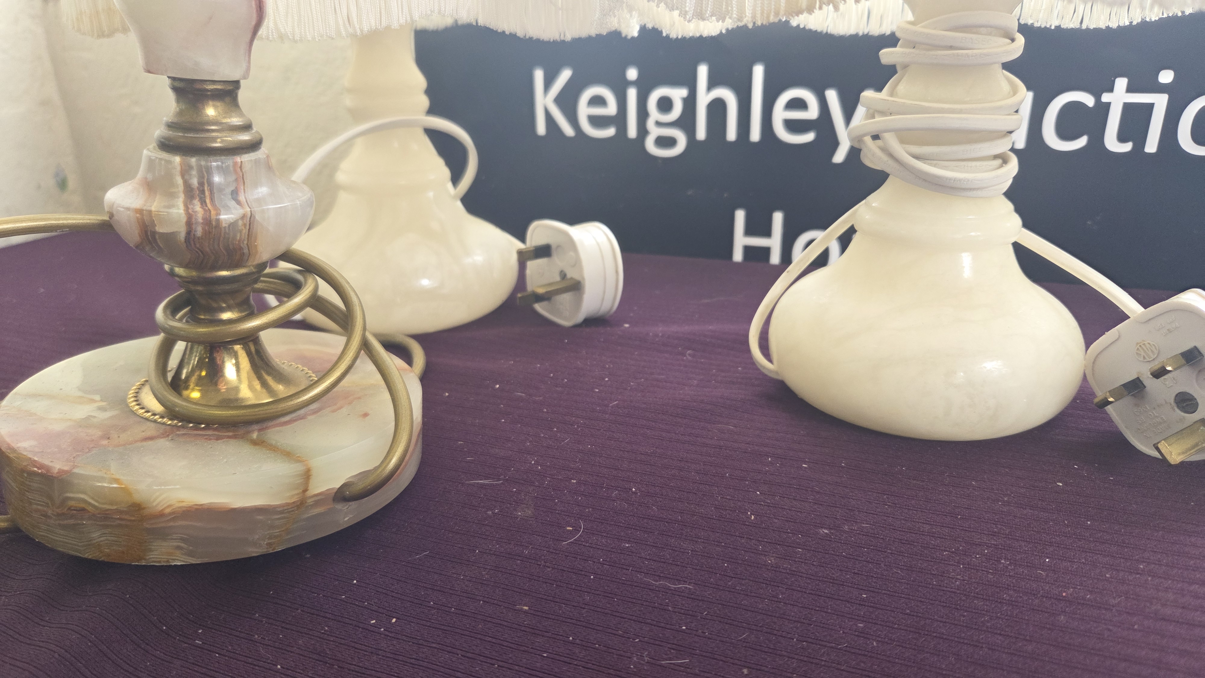 Lot 293 A Trio of Alabaster and Onyx Table Lamps