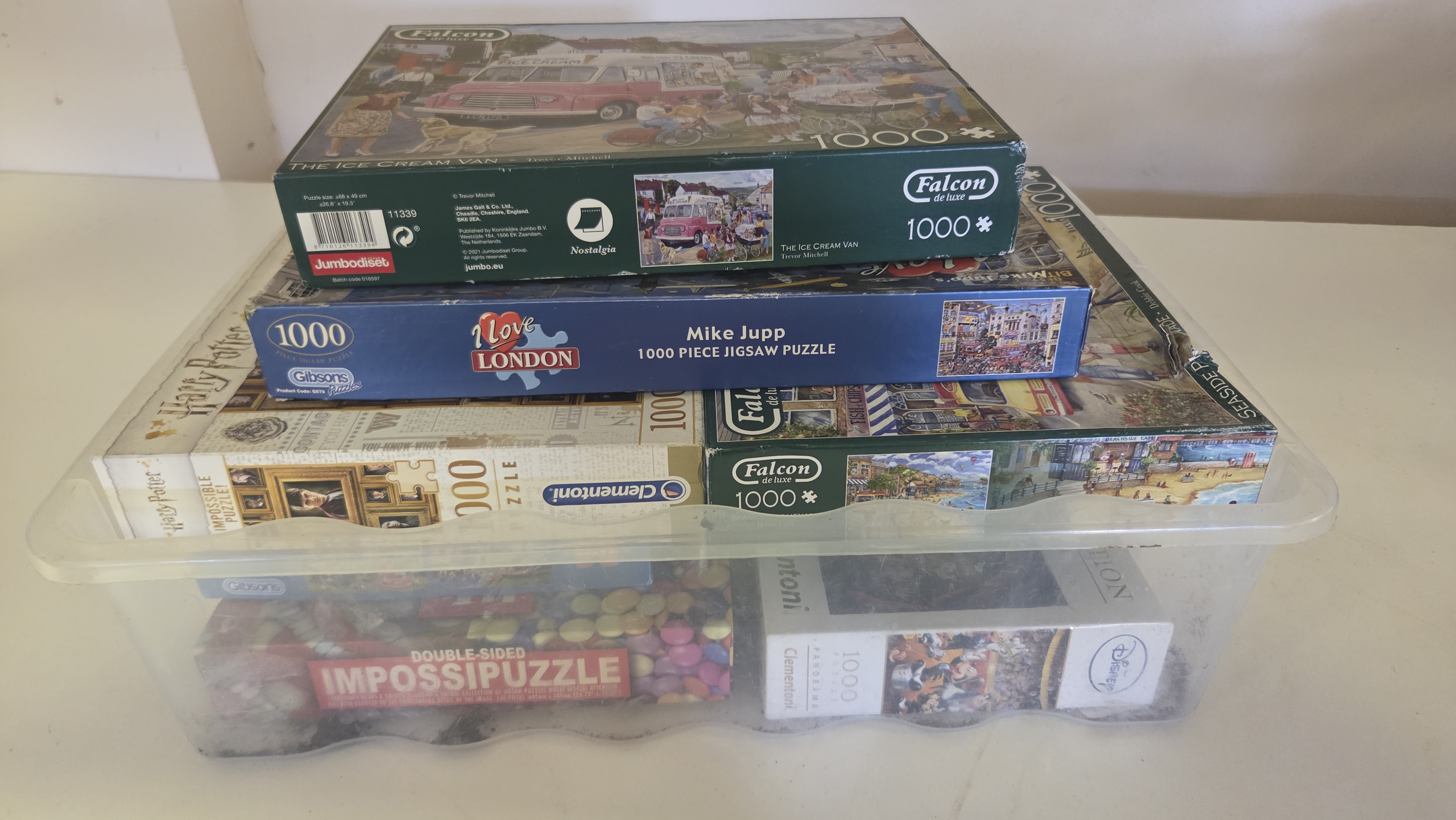 Lot 330 A Bopx of Jigsaw Puzzles by Falcon de luxe, Gibsons, and Clementoni