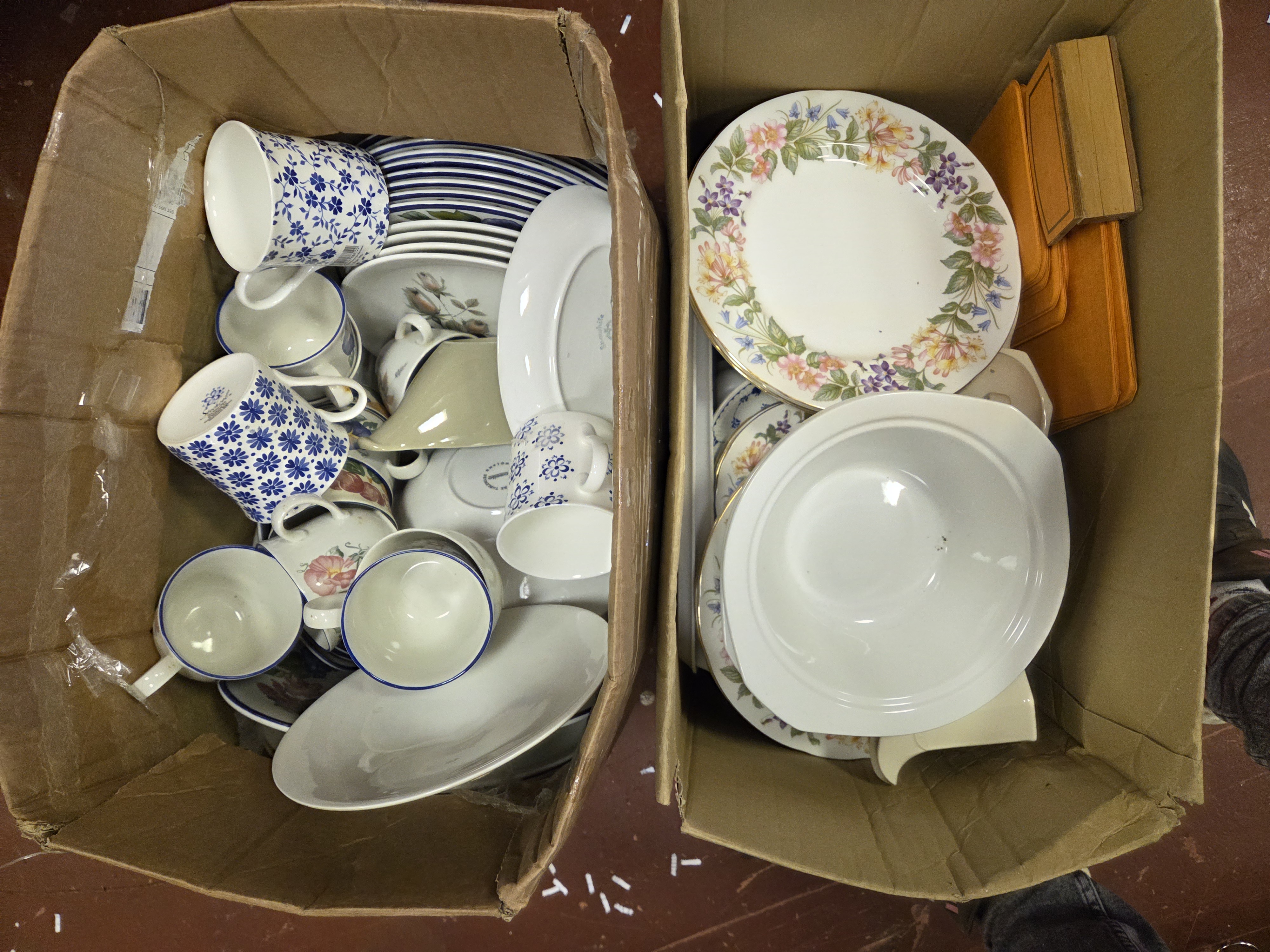 Lot 350 2 Boxes of Ceramic Tableware including Mikasa Garden Harvest and Ralph Lauren Mandarin Blue patterns