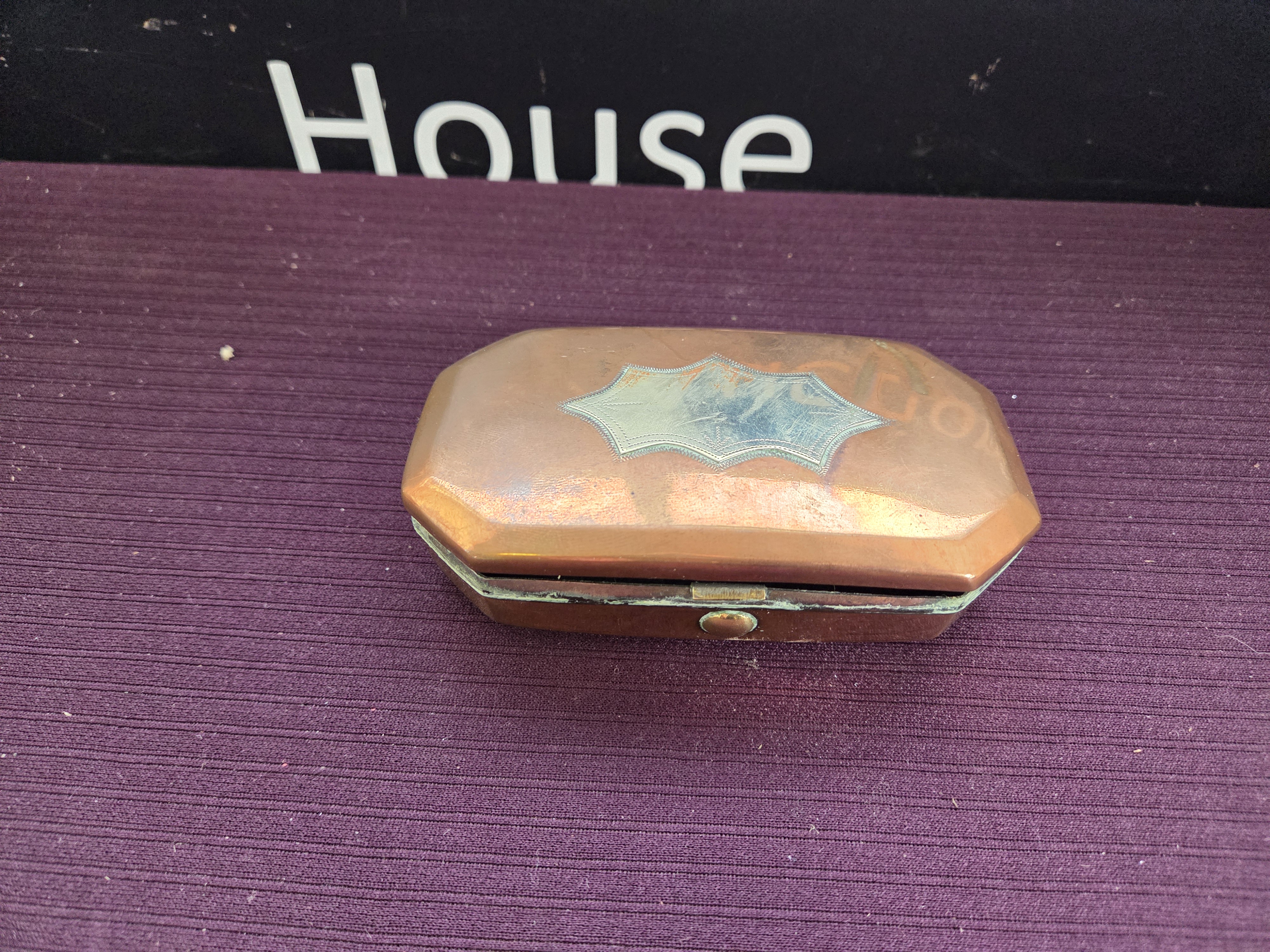 Lot 604 Late 19th or early 20th century octagonal copper and white metal snuff box