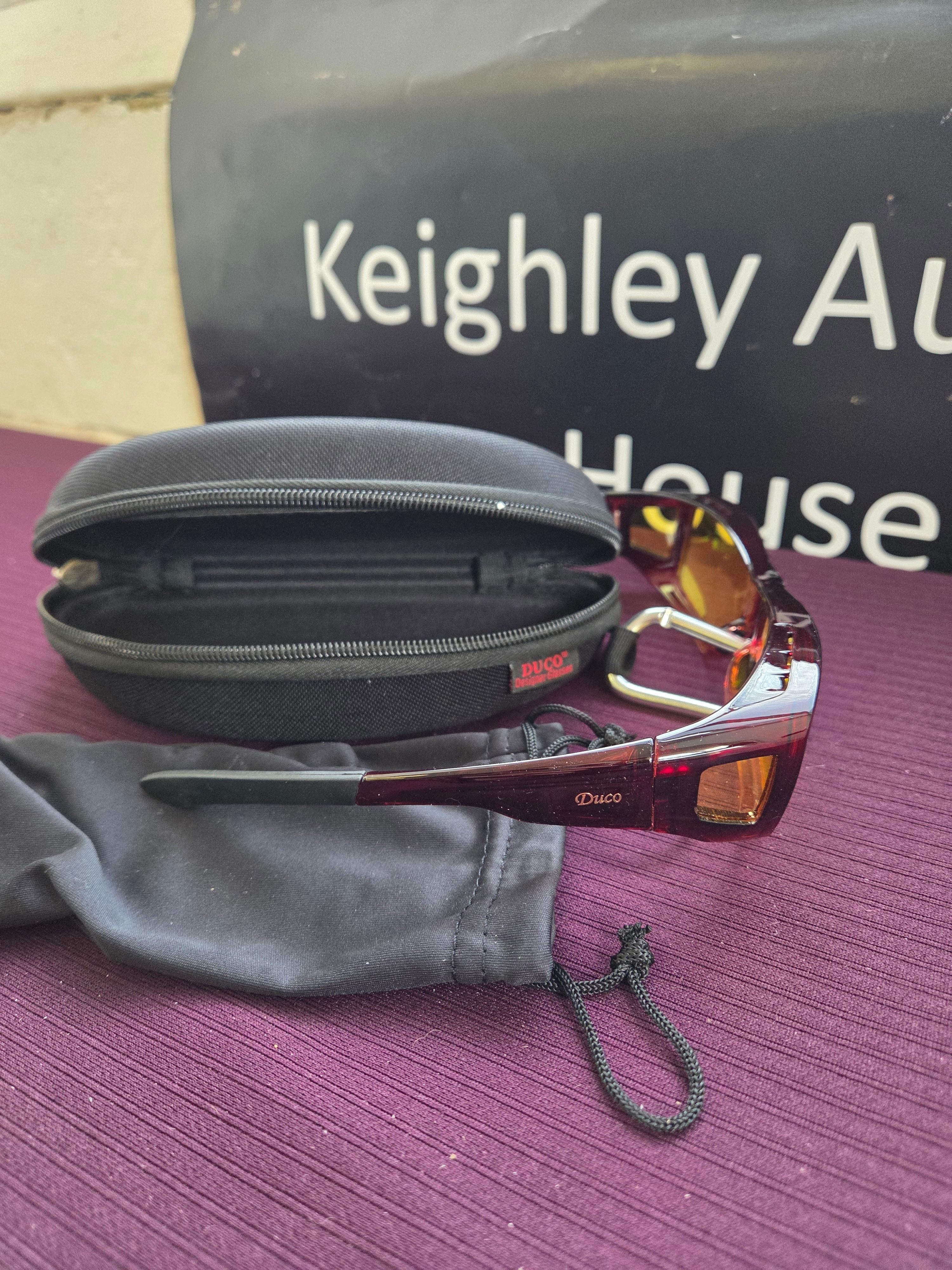 Lot 622 A pair of Duco fit-over polarised sunglasses with case and pouch